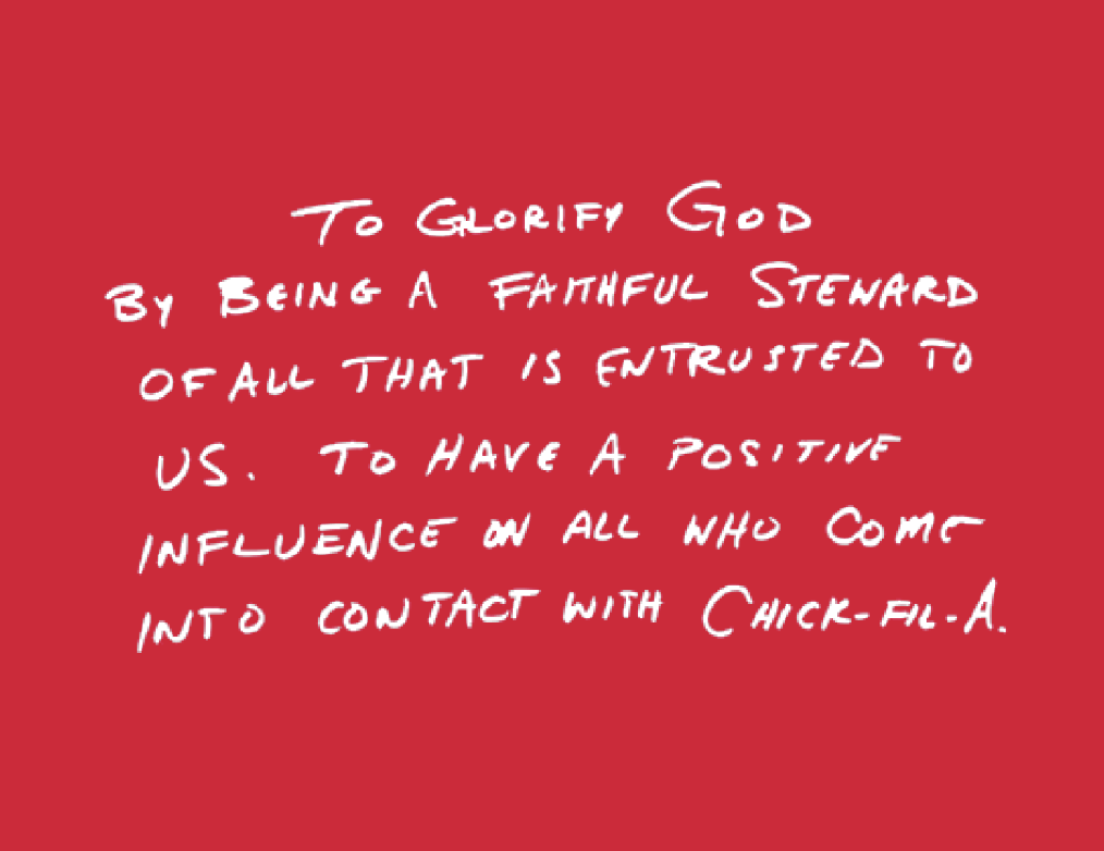 This goal of ours is inspired by the Chick-Fil-A founder, Truett Cathy.